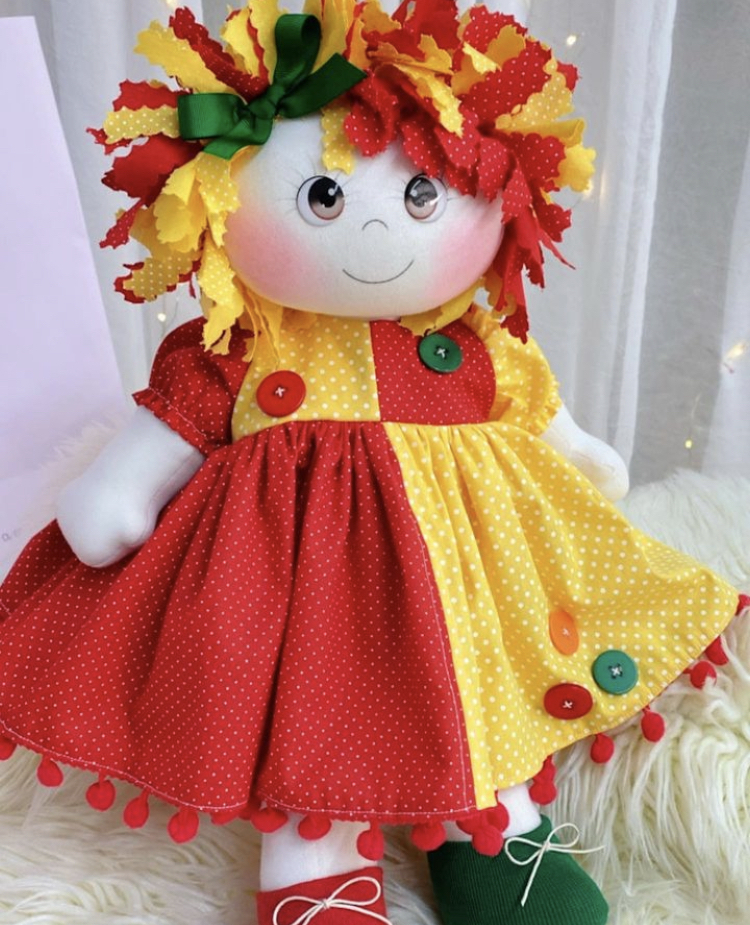 A Emília é uma boneca de pano de 45 centímetros que vai encantar as crianças com sua aparência meiga e acolhedora. Ela tem uma roupa de tecido de algodão de qualidade superior, e seus olhos e boca são harmoniosos e expresivos. Além disso, ela é preenchida com fibra de poliéster 100% antialérgica para garantir que ela seja segura e durável. Ela é um brinquedo que as crianças podem abraçar e levar para todos os lugares. A Emília é o companheiro perfeito para aventuras imaginativas e horas de diversão.