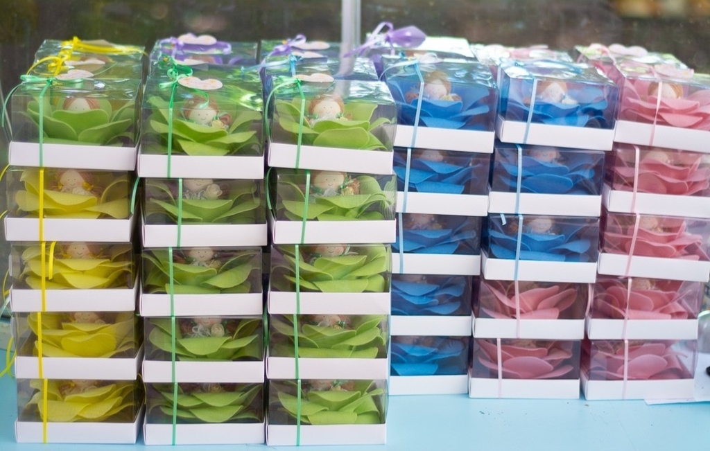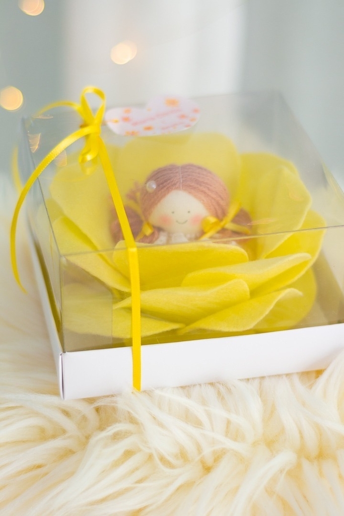 Confeccionadas em tricoline e feltro, enchimento em fibra siliconada e cabelos em lã, são perfumadas com assência rosa e romã. Acompanham a caixa e tag com nome. Pedido com quantidade mínima de 18 unidades.