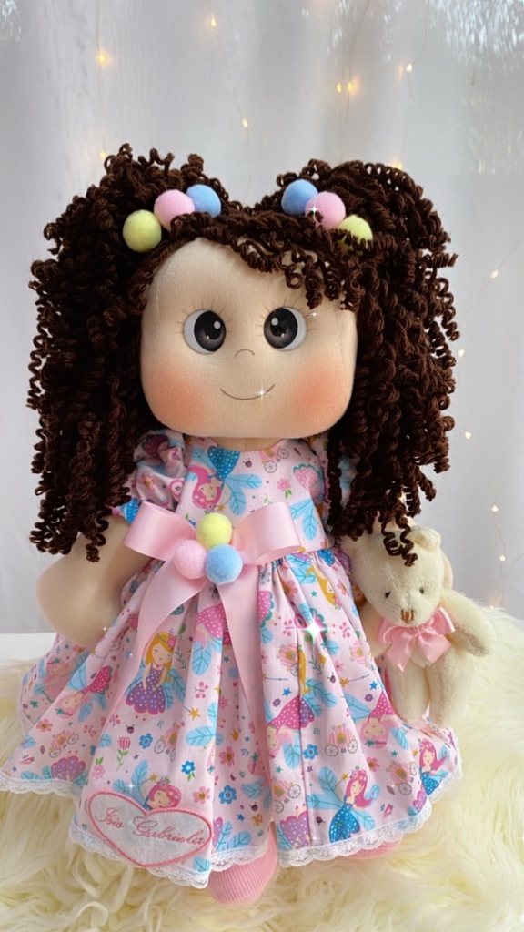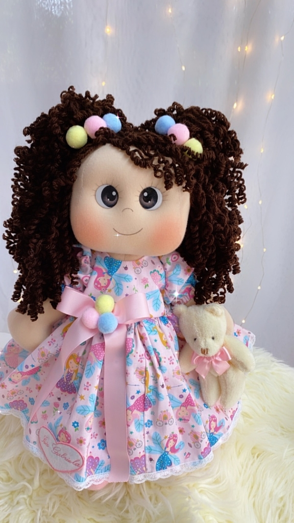 A boneca de pano Mariam de 45 centímetros com cabelos cacheados é uma opção incrível para crianças e colecionadores que adoram brinquedos únicos e feitos à mão. Com seus cachos volumosos e macios, Mariam é uma companheira perfeita para abraçar e brincar.